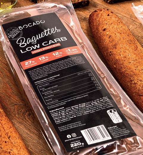 BAGUETTE PROTEICA , Envàs amb 2 unitats de BAGUETTE rica en proteïnes i amb un índex glucèmic molt baix.